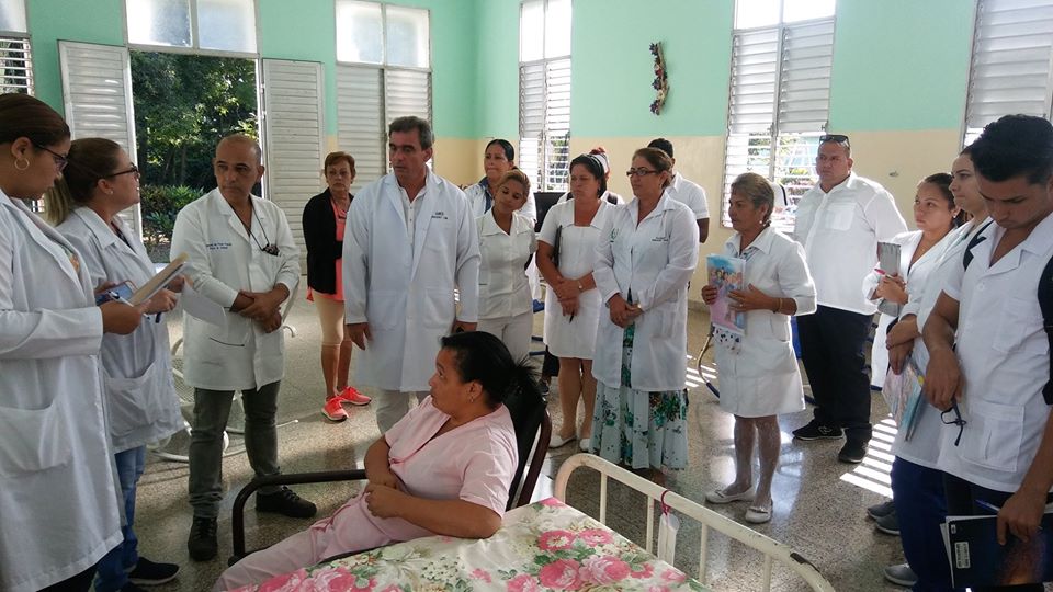 Pase de visita docente, asistencial y administrativo, a todos los pacientes del hospital, presidido por el Director del Hospital, Dr. Rolando Montero Díaz (Foto tomada de página en Facebook de la institución)