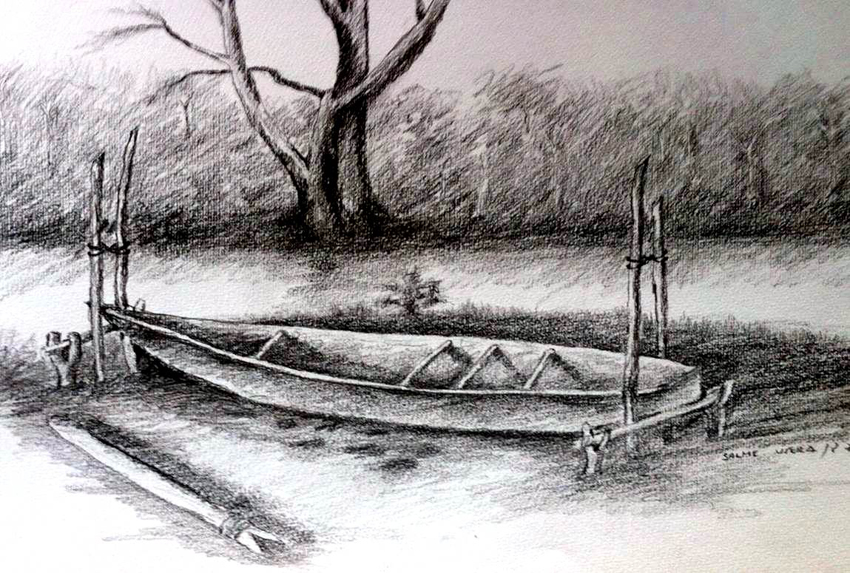 Dibujo de la canoa "Simón Bolivar" realizado por el pintor y expedicionario Fernando Salme. (Foto. Cortesía del Autor).