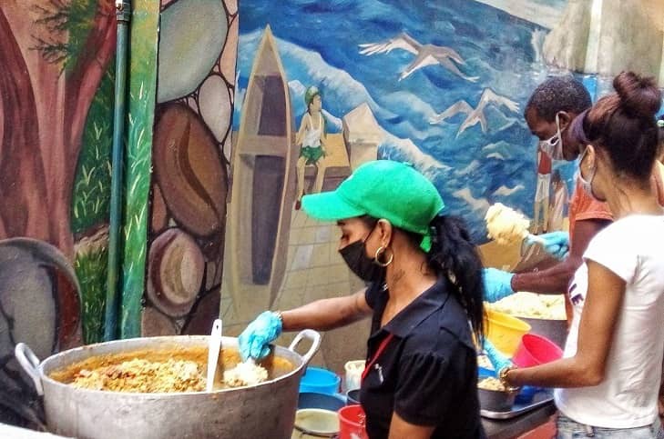 Con la llegada de pandemia de la Covid-19, la cocina-comedor del proyecto comunitario redimensionó su labor social. (Maya Quiroga/Cubahora)