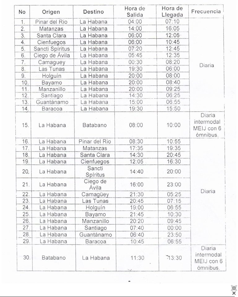 La reorganización realizada establece una salida diaria desde La Habana hacia las cabeceras provinciales y de estas hacia La Habana, adicionalmente se asegurará igual salida diaria hacia los municipios de Manzanillo y Baracoa.