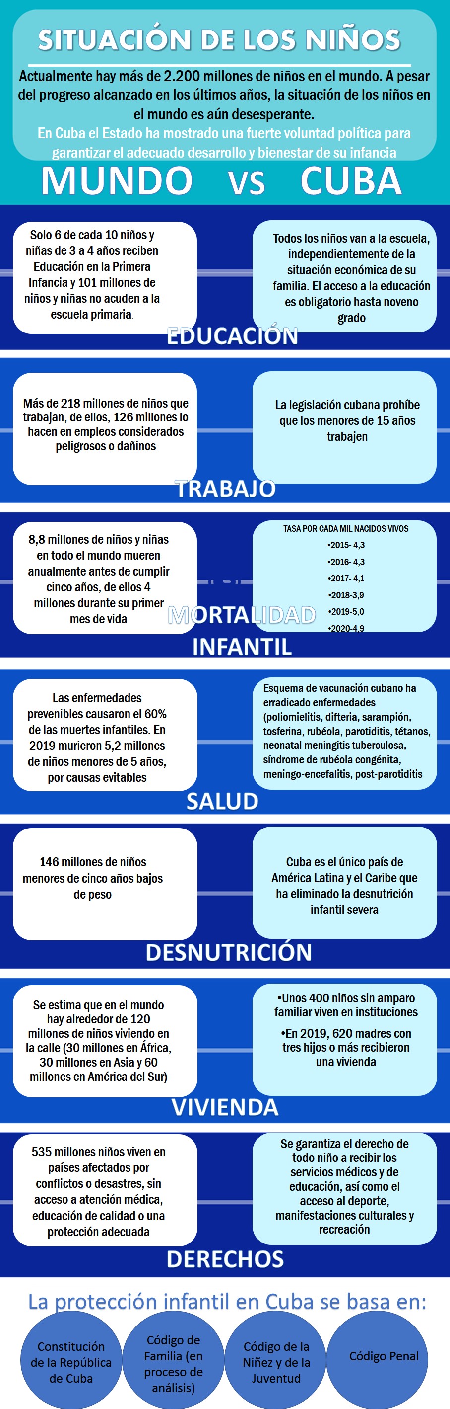 No se trata este de un tema novedoso en la sociedad cubana. Desde sus inicios, el proceso revolucionario en la isla otorgó a los niños un nivel de prioridad que poco después se tradujo en legislaciones protectoras de los derechos de la infancia y la adolescencia a través de la Constitución de la República de Cuba, el vigente Código de Familia, el Código de la Niñez y de la Juventud y el Código Penal.