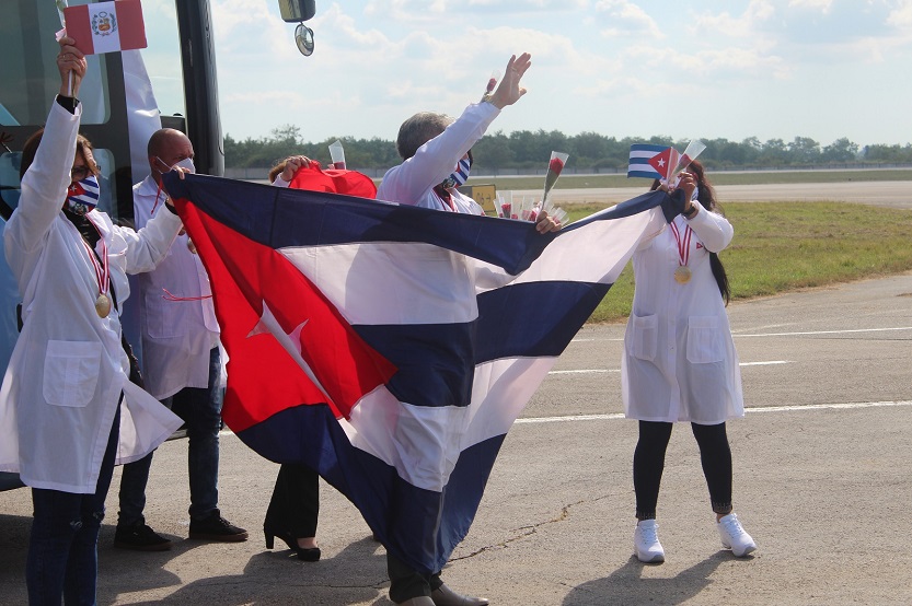 LLegada de la brigada de médicos cubanos Henry Reeve a Cuba desde Perú. (Mario Ernesto Almeida Bacallao / Cubahora)