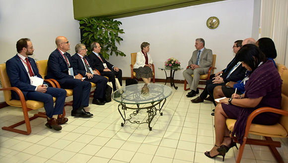 Durante el encuentro con Alicia Bárcena Ibarra, Secretaria Ejecutiva de la CEPAL, Díaz-Canel Bermúdez agradeció el acompañamiento de la Comisión al proceso de actualización del modelo económico del país (Foto: Estudios Revolución).