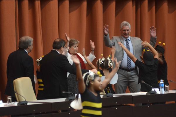 También precisa que pese al recrudecimiento del bloqueo económico y financiero de Estados Unidos contra Cuba, el país continúa trabajando en un plan de desarrollo de acuerdo con los objetivos de la Agenda 2030 de las Naciones Unidas, con la premisa de la inclusión social. Además, resalta la importancia de la democratización del conocimiento y de la disminución de la brecha en el acceso a las nuevas tecnologías. Ese día también se reúne con la excelentísima señora Alicia Bárcena Ibarra, Secretaria Ejecutiva de la CEPAL, después de que el día anterior sostuviera conversaciones oficiales con el excelentísimo señor Antonio Guterres, Secretario General de la Organización de Naciones Unidas (ONU).